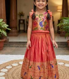Designer coral soft silk paithani design lehenga choli for girls-party & ethnic wear