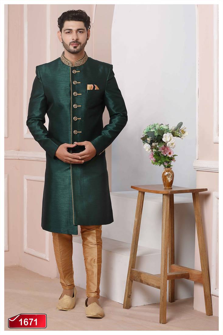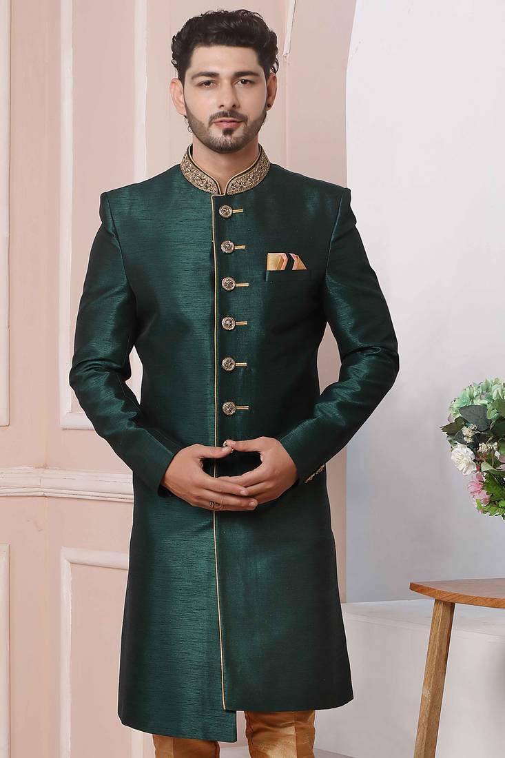 | Product Name | Green Embroidered Art Silk Sherwani | |